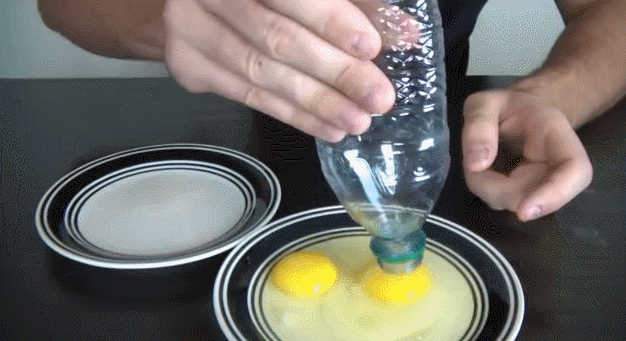 - Вы решили что- то приготовить и вам надо отделить желток от белка. Cпомощью небольшой пластиковой бутылки Вы легко сможете всосать желтки и перенести их в другую ёмкость.