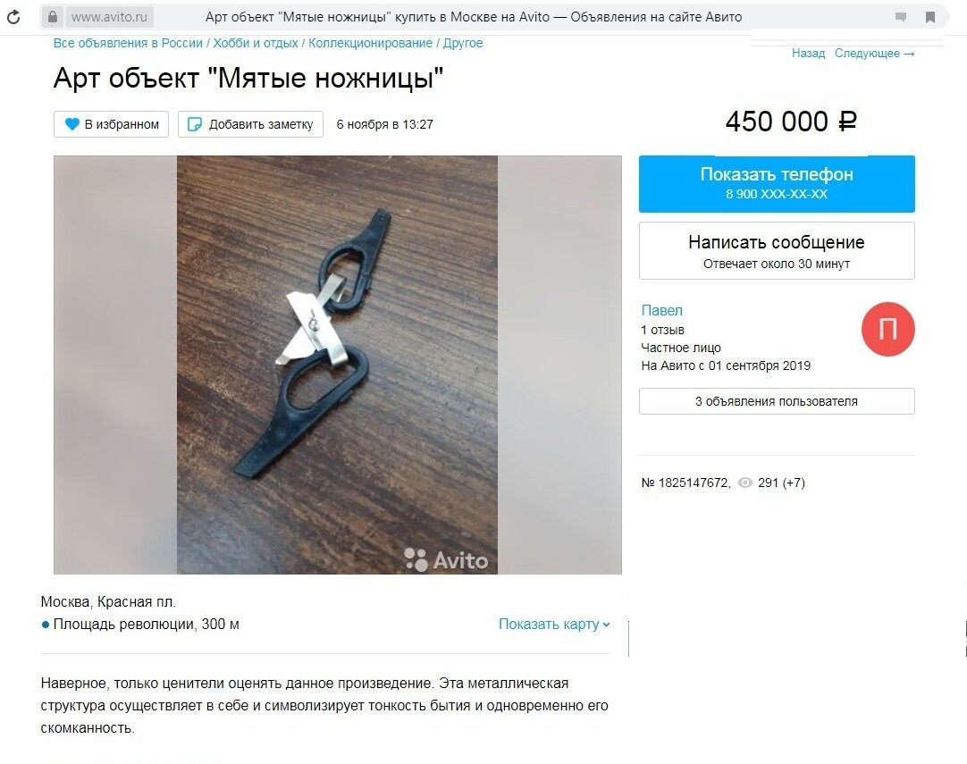 Первую часть – от лица продавца, Вы можете прочитать у меня профиле. Во второй части, я хочу показать подборку из любопытных и забавных объявлений, которые, как мне кажется, пользователи разместили ради хохмы или в надежде, что их объявления покажут в какой-нибудь юмористической передаче. А почему бы и нет…. Все может быть! Наверное, можно считать, что их цель достигнута. Итак, начнем. Однажды, когда я листала ленту объявлений авито, мое внимание привлекли необычные фото.…. В профиле пользователя, было несколько подобных объявлений. Молодой "художник", вдохновленный..... чем-то, что даже в аптеке не продается, предлагает нашему вниманию свои неординарные творения! А главное, обратите внимание на цены этих "шедевров". Творец весьма уверен в своих творческих способностях и оригинальности мышления!!! Следующий шедевр молодого творителя: И, еще одни, не менее оригинальный предмет. Автор назвал сие творение "Реальность" Вот уж, точно, для каждого из нас, реальность - это что-то свое.