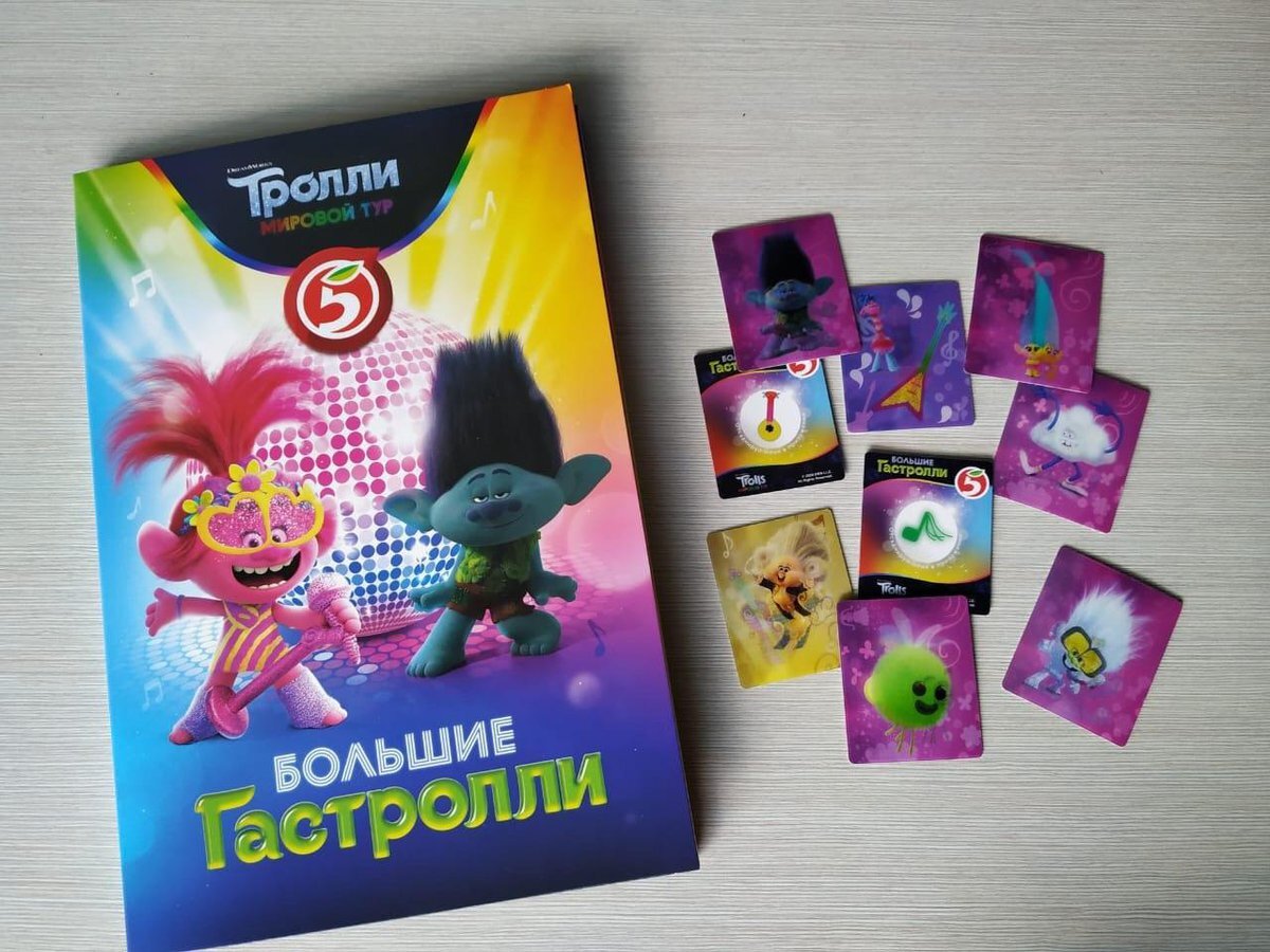 Сейчас в Пятерочке идет акция "Тролли в Пятерочке 2". Как и многие, я собираю Троллей. Для покупки тролля со скидкой, нужно чтобы сумма в вашем чеке достигла 555 рублей. Тогда вы купите его со скидкой, доплатив 250 рублей. За каждую покупку на 555 рублей начисляется 1 электронная наклейка, и вам дают карточку, которую можно сканировать с помощью установленной программы на телефоне. Карточки представляют собой голограмму троллей, показывающие веселые сценки из мультфильма "Тролли на гастролях". Можно купить карточку за 49 рублей. Но вряд ли, они кому-то нужны, если только детям. Троллей можно приобрести без дополнительных покупок, заплатив за них 555 рублей, но ведь куда удобнее, доплатить, чем оплачивать полную стоимость. Также дополнительные наклейки можно получить, купив товары участвующие в акции. Чтобы знать точно, за какие товары дают доп.наклейки, можно попросить на кассе буклет. Но вот с какой ситуацией я столкнулась, буквально, на днях. Я купила двоих троллей, имея на карточ