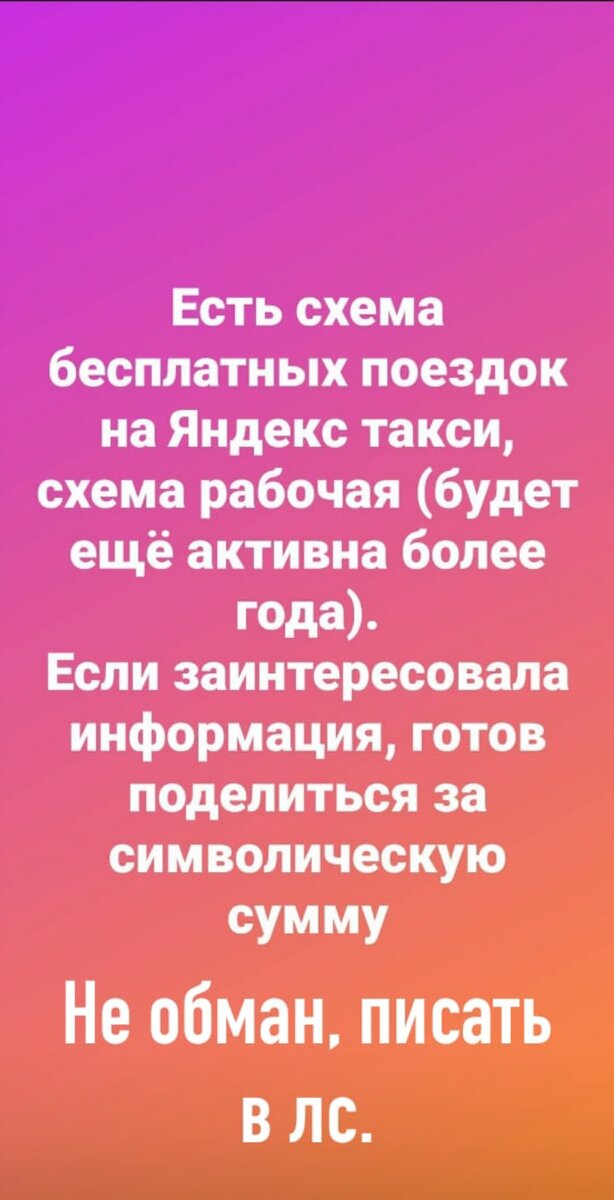 Здравствуйте, хочу предложить схему для бесплатных поездок в такси, интересует?