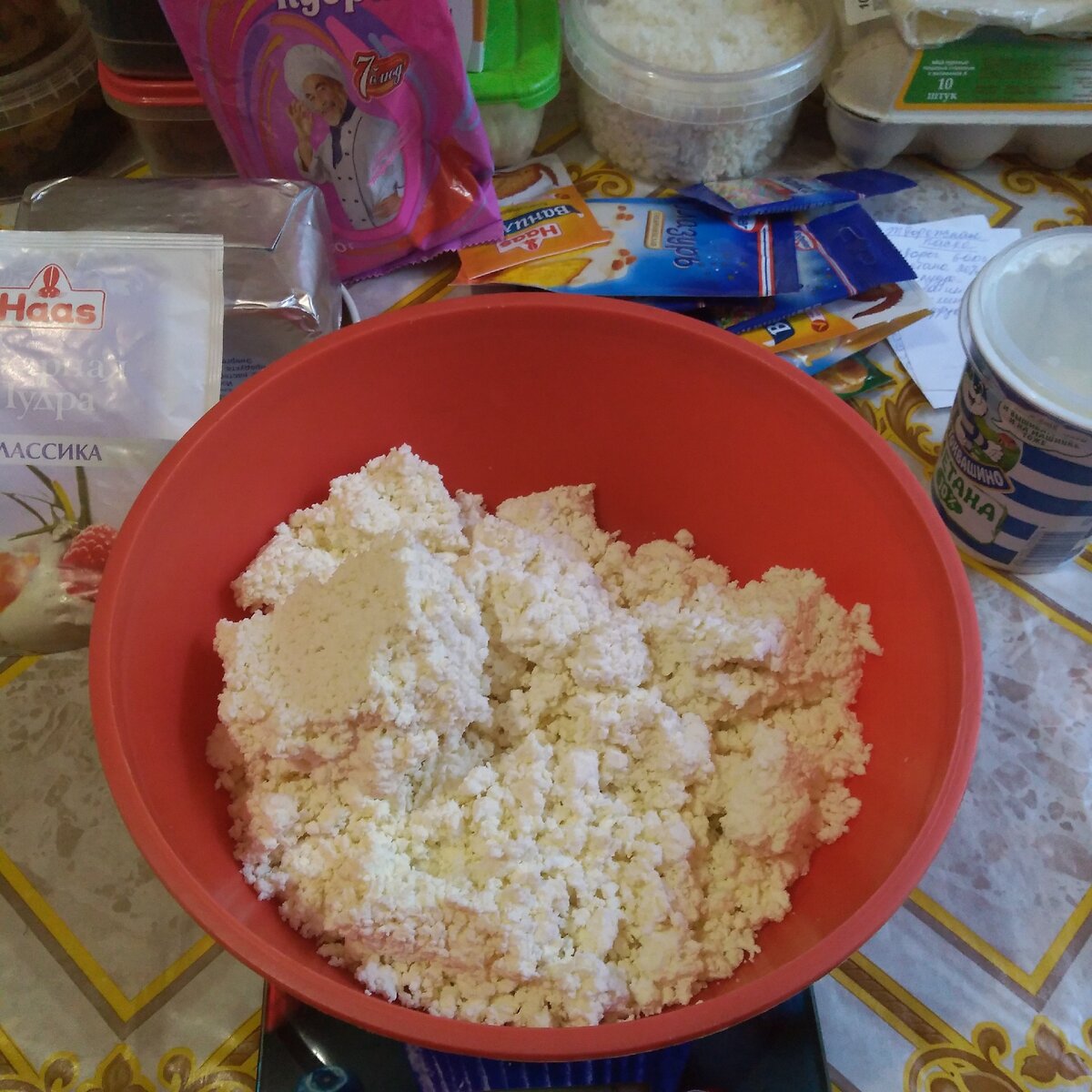 - Творог (у меня 2 %) - 720 г;