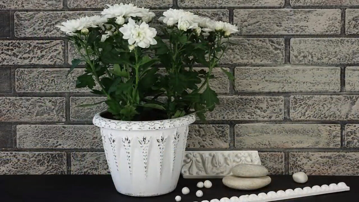 Кашпо получилось в классическом античном стиле. Рельефные узоры не перегружают композицию.