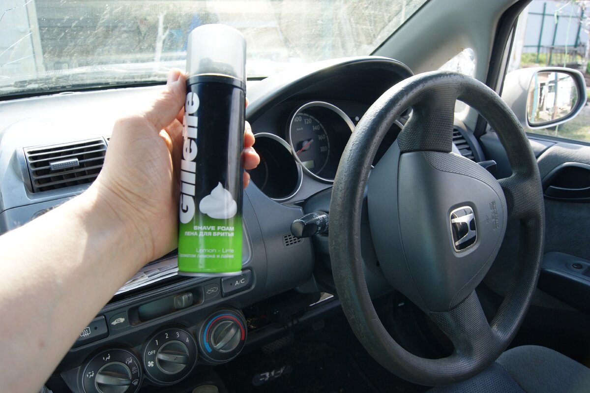 Приветствую друзья! В этой статье я хочу поделиться результатами моего эксперимента, а именно показать то, как пена для бритья может отполировать пластиковые детали внутреннего интерьера автомобиля. Свой эксперимент я буду проводить на пластиковой поверхности крышки перчаточного ящика или ,простыми словами, бардачка. Для более наглядного сравнения как было и как стало, поверхность крышки с помощью малярного скотча разделю на две части. На поделённый участок, который находится слева от меня, нанесу немного пены для бритья. После чего с помощью чистой тряпки, в моём случае тряпки из микрофибры, растёр пену для бритья по всей лицевой поверхности левой половины бардачка. Натираю поверхность тряпкой пока не исчезнет видимая часть пены. Когда поверхность отполировалось, убираю малярный скотч для сравнения двух половин (до/после). Вывод: Как видим из показаного сравнения на фото сверху, пена для бритья не только дала пластиковой поверхности отличный отполированный матовый эффект, который сей