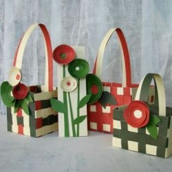 На Пасху принято дарить друг другу приятные сюрпризы. Дети получают в подарок сладости, куличи, а взрослым можно придумать более практичный презент — «Корзинку с яйцами». Такая поделка украсит интерьер кухни и надолго останется в памяти, если вы сделаете ее своими руками. Для изготовления корзинки из бумаги понадобятся: Далее действуйте по инструкции и фотографиям с подсказками: Разрежьте картон на длинные полоски, шириной 1-2 см. Соедините техникой «тканевое плетение», как на фото. Продолжайте плести до тех пор, пока не получите основание размером 15х15 см. Далее поднимите остатки полосок наверх и закрепите внизу скрепкой. Теперь можно приступать к возведению боковых частей. По окончанию работы загните края бумаги внутрь поделки. Украсьте готовый сувенир самодельными цветами и приклейте корзине ручку. Внутрь поделки можно положить настоящие пасхальные яйца или поделки выполненные из шаров и ниток. Самодельное,НЕ значит плохое!Подписываемся и узнаём еще о многих интересны