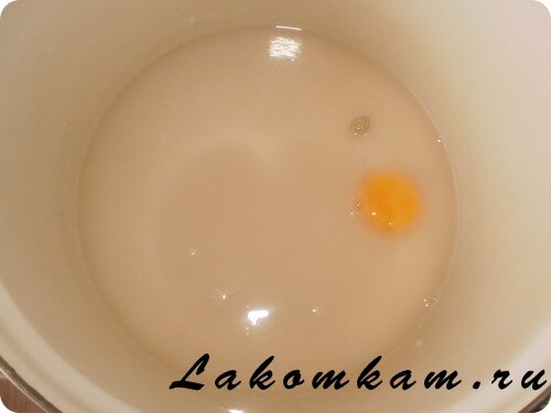 Развести дрожжи в тёплой воде. Разбить яйцо в полученную массу.