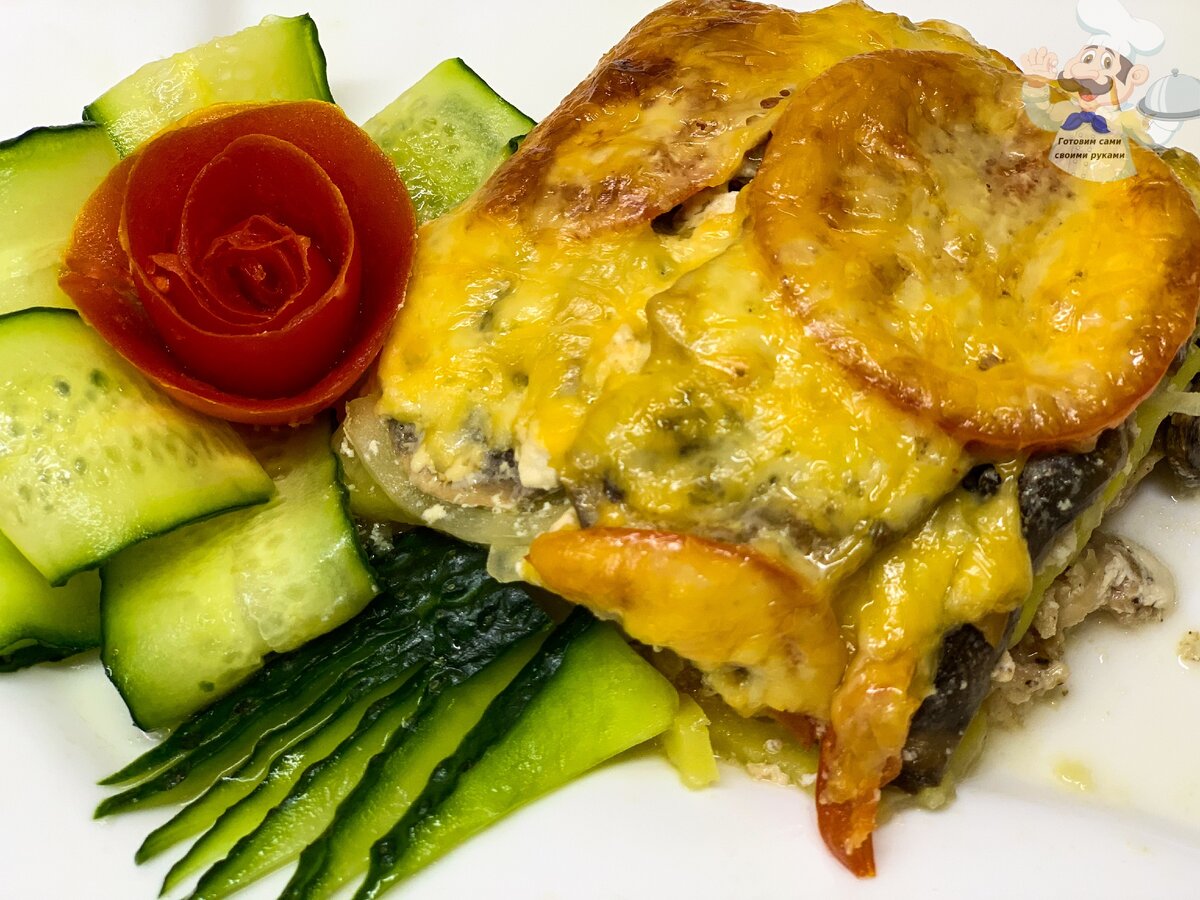 Запеканка будет отличным вариантом для сытного и полезного обеда или ужина. Это простое и несложное в приготовлении кушанье, которое всегда получается нежным и вкусным, даже самые маленькие детки по достоинству оценят это полезное лакомство, приготовленное мамой. Ингредиенты: → филе молодого кролика – 300-400 г. → лук – 1 луковица → картофель – 2 штуки → помидоры – 2 овоща → шампиньоны – 300 г. → сливки – 180-200 г. → сыр – 150 г. → соль, перец – по вкусу Поэтапный процесс приготовления запеканки: 1. Мясо кролика делим средними кусочками и выкладываем на дно огнеупорной посуды. 2. Сверху посыпаем перцем и солью. 3. Очищенный картофель шинкуем тонкими пластиками и распределяем равномерно следующим слоем. Чуть солим и перчим. 4. Сверху на картофель кладем лук, нарезанный полукольцами. 5. Споласкиваем грибы, снимаем верхнюю кожуру. Нарезаем ломтиками и закрываем лук. 6. Помидоры делим на одинаковые кружочки и выкладываем на грибы. 7. Затем заливаем содержимое формы жидкими сливками. 8. Пр