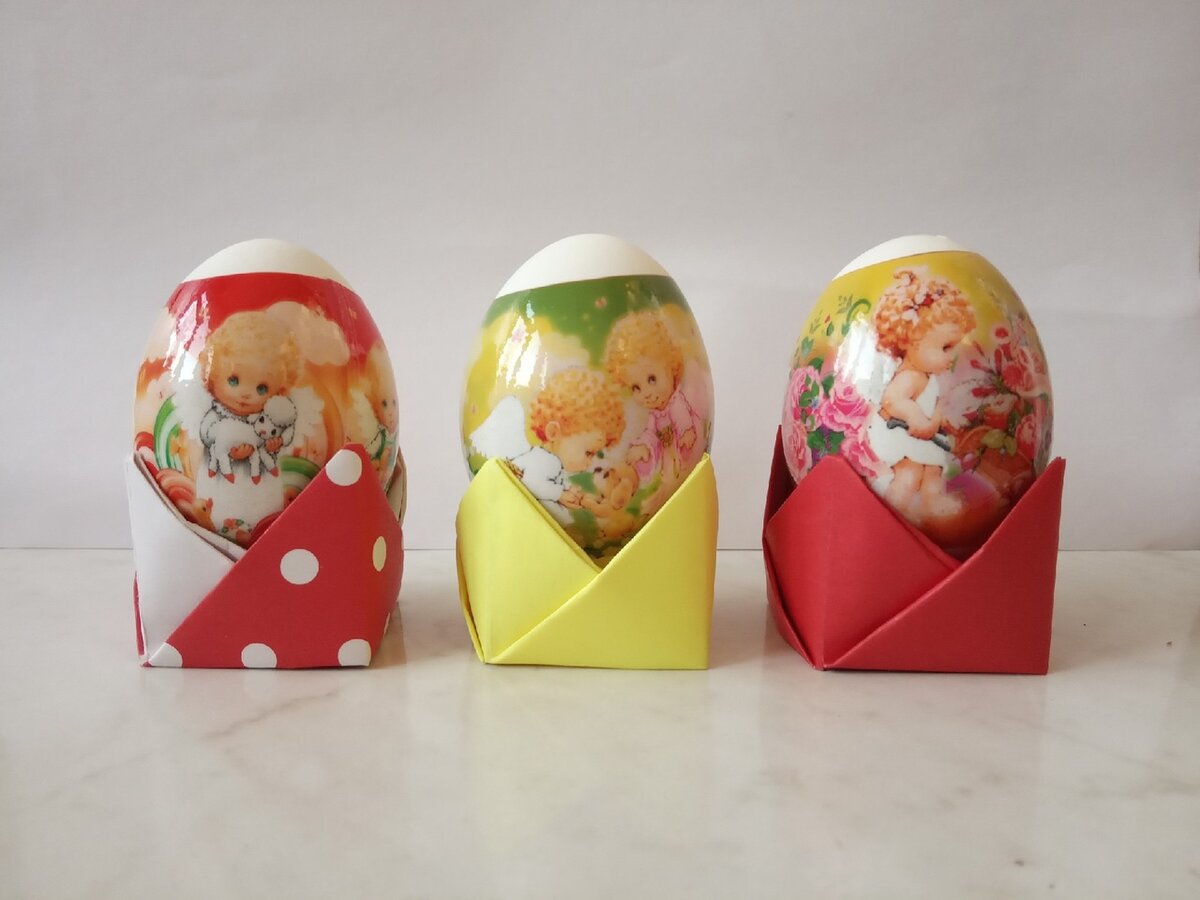 «Оригами – это просто, оригами – это быстро». С таким оптимистичным настроем сегодня мы расскажем, как сделать подставку для яйца за 5 минут. 1. На листе бумаги начертите квадрат со стороной 14,5 см. Чертите на изнаночной стороне листа. Вырежьте. 2. Взяв листок за верхние углы, согните квадрат пополам движением "на себя", чтобы лицевая часть лица оказалась внутри. 3. Боковые стороны сложите к центру, прогладьте. 4. Сделайте сгибы наверху, отгибая концы. У вас получится нечто вроде воротника рубашки. 5. Верните «воротник» на место. 6. Распрямите лист. 7. Сложите переднюю часть листа к центру, как показано на фото. 8. Переверните лист на другую сторону. 9. Боковые части сложите к центру. 10. Поднимите боковые уголки к центру. 11. Поднимите большой угол наверх. 12. Переверните листок на другую сторону. 13. Поднимите боковые уголки к центру. 14. Поднимите большой угол наверх. 15. Выверните подставку, продавливая верхнюю часть внутрь. 16. И вот конечный результат. Есл