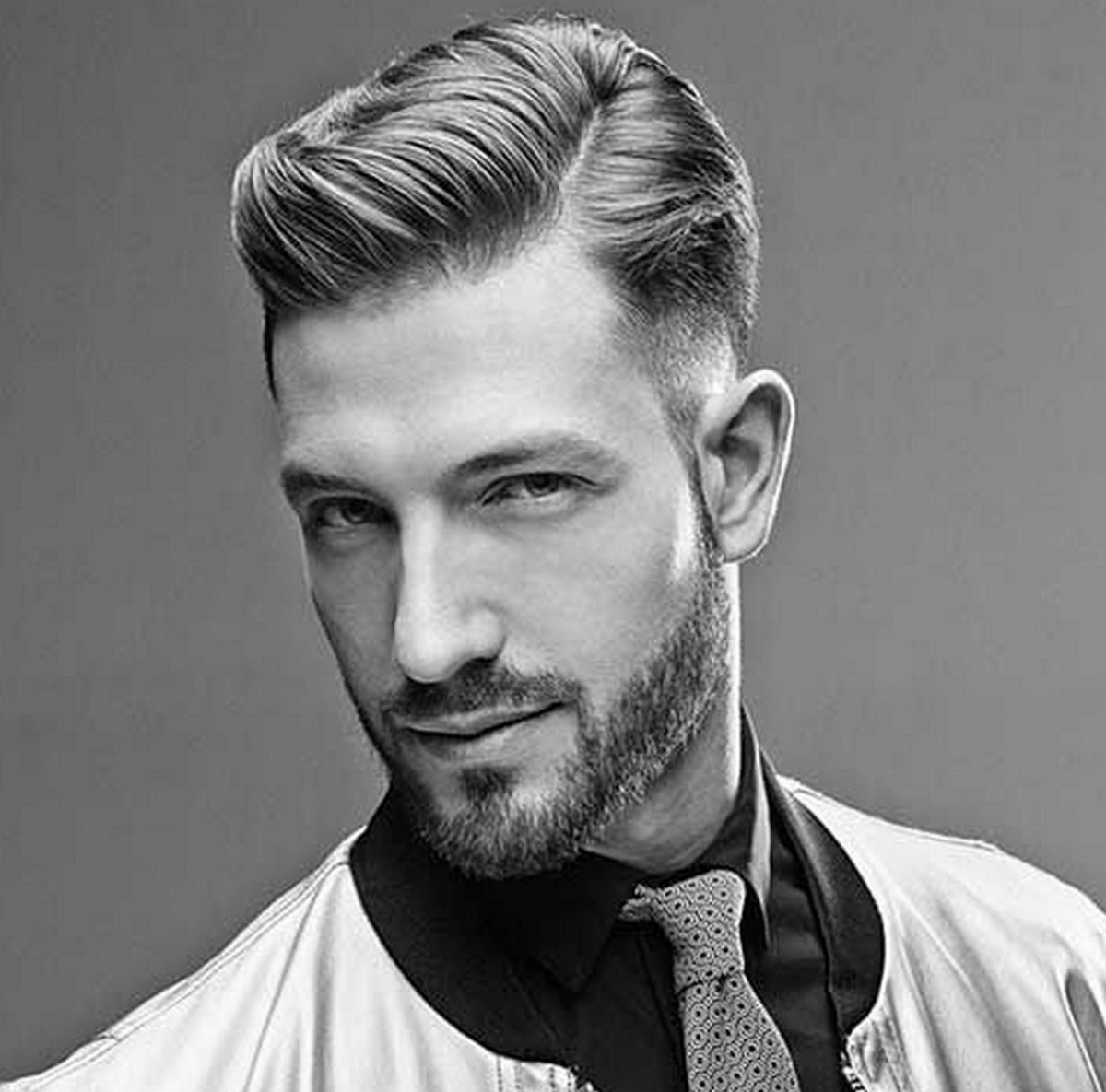 Классическая мужская стрижка «британка» Британка выполняется на чуть отросших волосах и идеально подходит мужчинам и парням с вьющимися или кудрявыми волосами. Такой вариант характеризуют удлинённые пряди на темени и затылке, которые укорачиваются в районе висков. Разница длины при этом не особо важна, главной особенностью является аккуратно и плавно выполненный переход между прядями. Стильная стрижка для мужчин «канадка» Такая модель немного похожа на предыдущую причёску, но отличается более длинными прядями в области лба и макушки. Канадка прекрасно подходить мужчинам с овальным или круглым лицом, а также обладателям кудрявой шевелюры. Чёлка такой стрижки может быть зачёсана на бок или зафиксирована средствами для укладки назад. Стрижка «андеркат» Эта оригинальная модель представляет собой очень коротко остриженные волосы на затылке, с контрастной длиной прядей на макушке. Также одной из характерных особенностей этой модели является выбритый сбоку пробор и височная часть. Слегк