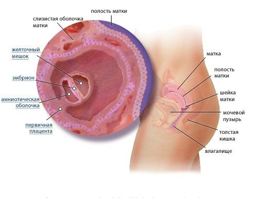 Начинается второй месяц беременности, а вместе с ним — новые достижения в развитии эмбриона. Закладка органов и систем продолжается. В частности на 5 неделе беременности начинают закладываться верхние и нижние дыхательные пути, печень, эндокринная и поджелудочная железы. Что происходит с эмбрионом? К сроку пятой недели беременности плодное яйцо прикрепилось к стенке матки, и плод активно развивается. Его вес менее грамма, а длина 1-3 мм. Несмотря на микроскопические размеры, эмбрион растет и принимает форму буквы С. Плод представляет собой цилиндрик, верхняя часть которого голова, а нижняя – ножки. Уже сейчас прорисовываются элементы лица: ямки в месте ушей, зачатки глаз, щель на месте рта и носа. Это кажется невероятным, но именно на 5 неделе формируются гонобласты — прародители яйцеклеток и сперматозоидов, ваших потенциальных внуков. Ощущения и самочувствие будущей мамочки: Будущей мамочке нужно быть очень аккуратной, потому что 5 неделя грозит выкидышем, больше всех этому подве