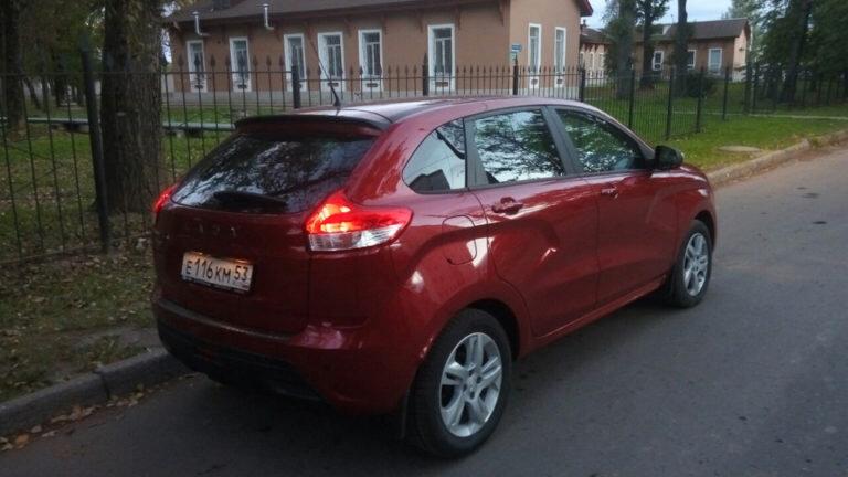 Optima, MT. Бензин, 1600 куб.см, 110 л.с. Пробег – 18 000 км. Сразу отмечу приемлемую цену. Для меня кредит не страшен, но предпочитаю менять автомобиль каждые несколько лет. Поэтому и решил покупать Lada XRAY. Обошелся автомобиль в 619 тыс. Основную роль сыграл минус в 50 тыс. за услугу «trade-in». Основные впечатления: Диски на колёсах меня порадовали. Неоднократно попадал на скорости в ямы, но все остается на местах. Изначально стояли 16 дюймовые колеса. Внешний вид с ними выглядит асимметрично, поэтому со временем перешел на 17. Брызговики в целом справляются с ездой по городу. Однако при выезде на лёгкое бездорожье передние панели отрываются при попадании на них крупных камней – с задними брызговиками все хорошо. Переходя на кузов, отмечу целостность всех стеклянных элементов: лобового и боковых стекол, фар. Несмотря на частые попадания мелких камней трещины отсутствуют. Двери закрываются без нареканий. Дети также справляются с ними легко. Однако претензии есть к задней двери.
