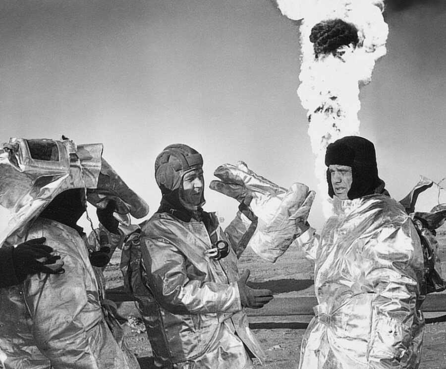 25 июня 1985 года на нефтяной площади "Тенгиз" на восточном побережье Каспийского моря в Казахстане в результате аварии возник нефтяной фонтан. Спустя двое суток нефть самовозгорелась. Фонтан вырывался с глубины 5000 метров и пламя достигло высоты 200 м. Температура на устье до 1500 градусов. Огонь тушили 398 суток - с 23 июня 1985 по 27 июля 1986 год. При ликвидации аварии не обошлось без человеческих жертв. Было испробовано множество способов погасить пламя - с воздуха, из-под земли. Предлагали сбросить с неба или протащить по земле на жерло горящей скважины, как крышку, многотонную стальную нашлёпку. В итоге через год скважину № 37 удалось заглушить с помощью направленного взрыва изнутри. В результате аварии на Тенгизе в атмосферу было выброшено 3,4 миллиона тонн нефти, 1,7 миллиарда горючих газов, 850 тонн меркаптанов и 900 тысяч тонн сажи.