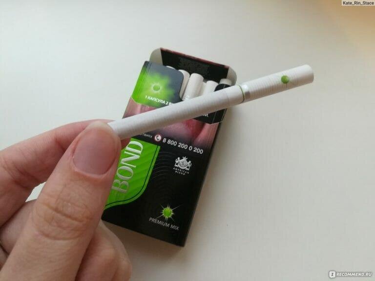 Всем хорошо известны сигареты под названием Бонд. С некоторых пор табачные изделия производят снабженными капсульной кнопкой. Посмотрите на упаковку с сигаретами, и становится понятно, что это за кнопка. На пачке указано, что надо нажать на кнопку – в результате лопнет капсула, содержащая ароматизатор (ментоловый или с запахами фруктов), и тот, кто курит, получит удовольствие от аромата. От выкуривания сигареты остается вкус свежести, сопровождаемый приятными ощущениями в горле. При раскуривании почти нет запаха дыма, если сравнивать с привычными изделиями, не имеющими наполнителя и капсу Bond Street Compact Premium Mix — марка названа по улице Бонд Стрит, где расположены дорогие магазины элитного района Лондона. Бонд» с кнопкой — изделия из табака, приобретающие огромную популярность, модный атрибут молодёжи. Пачка не содержит информацию о том, какого вкуса капсула, но на оборотной стороне написано: «Летний микс вкусов одним нажатием». Открывая упаковку, читаем: сигарета имеет одну к