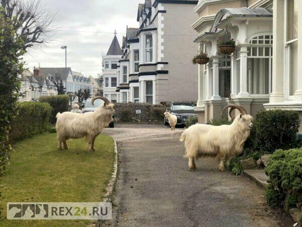 В городе Лландидно в Уэльсе, как и во многих других, улицы из-за карантина совершенно опустели. Однако это продлилось недолго. Туда пришли более сотни горных коз. Они бродят по улицам и заглядывают в окна.