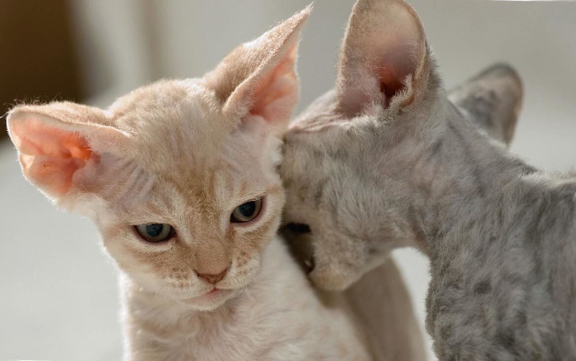 Коты породы девон рекс известны своими большими ушками и шерстью с милыми завитками. Это благородные англичане с добрым и дружелюбным характером, которые быстро привязываются к хозяину и обладают преданностью и верностью. История происхождения породы Первые представители породы появились в 60-х года в Англии. Кучерявых котят нашли абсолютно случайно в одном из небольших графств (Девоншир – отсюда и название породы). Изначально селекционеры предполагали, что эти питомцы являются сородичами корниш рексов. Однако после нескольких экспериментов со спариванием эта гипотеза отклонилась. Первым котом девон рексом считается черный мурлыка по кличке Кёрли (с английского – «кучерявый»). Именно с него началось выведение стандартов породы. В 1968 году разведением девон рексом занялись и американские фелинологи. С тех пор по очереди породу признавали одна за другой фелинологические организации (1972 – ACFA, 1979 – TICA, 1983 — CFA). Внешние особенности девон рекс Приставка «рекс» опи