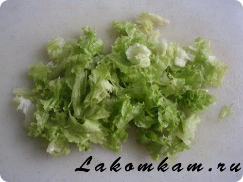 Салат «Ленивый Цезарь». Приготовление. Нарвите руками листовой салат.