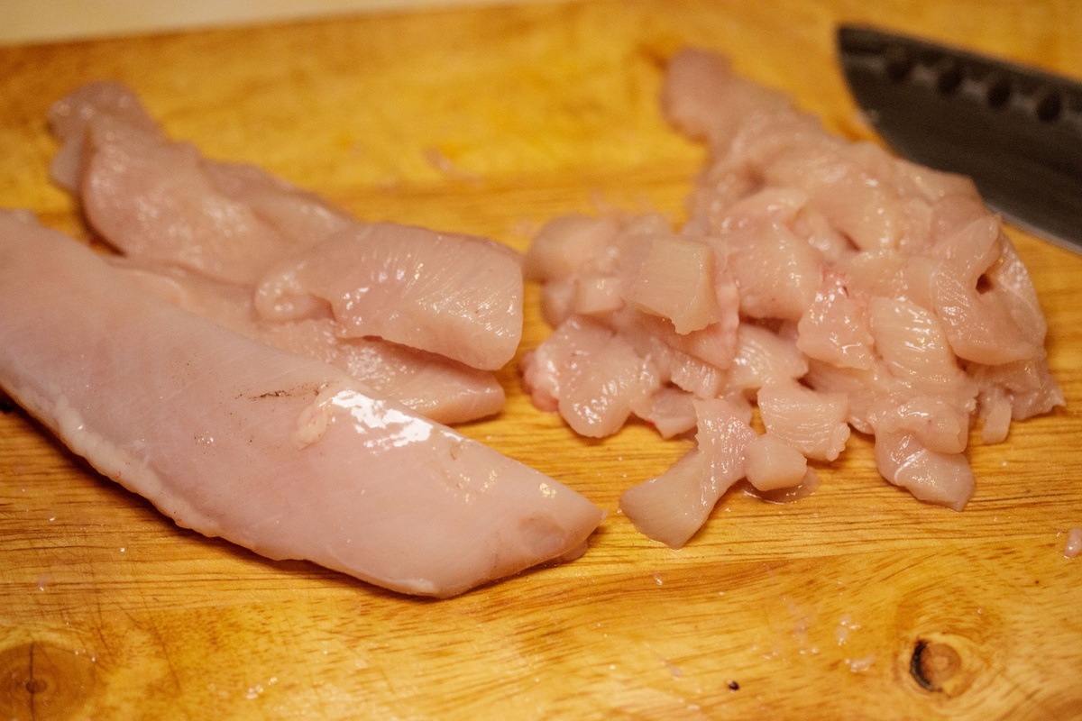 Спасибо, что дочитываете мои рецепты до конца. Это вдохновляет меня больше готовить и экспериментировать! Ингредиенты: Я порезал филе кубиками. Лук порезал тонкими полукольцами. Затем положил его в дуршлаг и обильно обдал кипятком. Картошку порезал маленькими кубиками и тоже обдал кипятком. Затем я отделил желток от белка. Желток добавил в начинку, а белок немножко взбил до однородности (он пригодится в конце). Зиру я растолок в ступке и добавил к остальному. Посолил и поперчил. Можно ещё натереть в начинку замороженное сливочное масло.