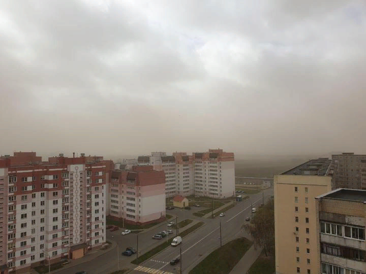 В эти часы на Гомельщине бушует настоящая песчаная буря. Сильный порывистый ветер поднимает пыль высоко в небо. В итоге населенные пункты погружаются во тьму, а автомобилистам на трассах из-за нулевой видимости приходится съезжать на обочины и останавливаться.