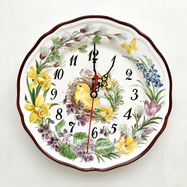 Люблю тематические заказы. Эти часы-тарелка расписаны на заказ к Пасхе, празднику весны и солнца. Поэтому главные герои росписи: первые весенние цветы и озорные, веселые, только что появившиеся на свет желтые цыплята. Неделю назад отправила часы заказчице в Москву. Надглазурная ручная роспись фарфора, нестираемый рисунок, авторская концепция по мотивам антикварных иллюстраций. С тыльной стороны бесшумный механизм на батарейке и петля для размещения на стене. Размер тарелки 28 см. Вместе с настенными часами можно расписать посуду, сервизы, серию декоративных тарелок для украшения стен или полок кухонных шкафов. Подписывайтесь, пожалуйста, на канал, оставляйте комментарии. Все мои работы можно посмотреть в Инстаграм (artflera, ссылка в профиле).