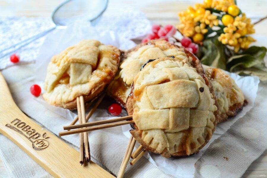 ИНГРЕДИЕНТЫ Тем временем приготовьте начинку. Яблоко очистите и порежьте на кубики. Сбрызните яблоки лимонным соком, добавьте сахар, корицу и крахмал, перемешайте. Половину теста порежьте на полоски. Из полосочек сделайте сеточку и пройдитесь по ней скалкой, чтобы тесто скрепилось и пласт стал более тонким.Из сеточки с помощью круглой формочки выдавите кружочки диаметром 7-8 см. тонкий пласт. Выдавите такие же по диаметру кружочки. На каждый кружочек положите палочки для мороженого или две маленькие шпажки. На середину положите по 1 ч. ложке яблочной начинки и половинку карамельной конфеты. Сверху накройте кружочком из сеточки и скрепите края вилкой. Запекайте кейк-попсы в духовке при температуре 200 градусов 20-25 минут, пока тесто не станет румяным и хрустящим.