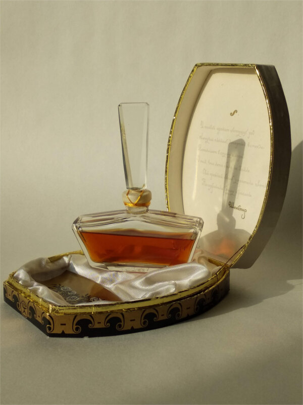 Этот отрывок полностью воспроизведен на коробке духов, чтобы не оставалось сомнений, чей именно сонет имелся в виду. Вообще создается ощущение, что на Новой заре постарались воплотить эти строки в жизнь буквально: граненый флакон выглядит так, будто духи действительно заперты в его тяжелом стекле. Чтобы усилить впечатление, дизайнеры придумали подложить под флакон картинку с цветами - и пока флакон покоится на атласном ложе, мы словно заглядываем в цветущий розовый сад через старинное окно из мелких стекол, а когда берем флакон в руки, видим, что сад был лишь иллюзией.