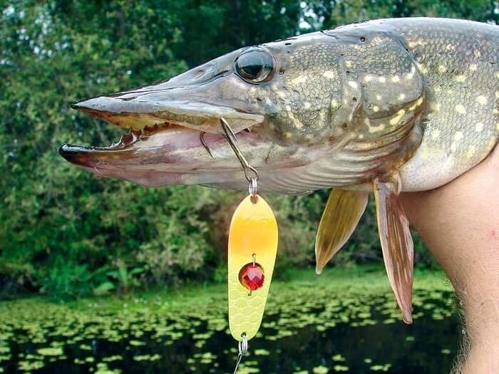 Касательно этой американской блесны могу сказать то же, что и в отношении "Двины": размер не самый щучий, потому и попадаются большей частью щупаки весом менее килограмма. Но местами, особенно на речных отмелях, - много.
