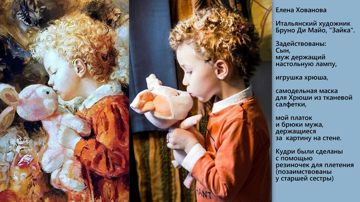 Самой странно, как сильно меня умилил этот сюжет. Мальчик и игрушка - всего лишь. А как трогательно! После прочтения описания мне интересно: а мальчик вообще кудрявый? Или волосы достаточной длины? :) Но это всё детали. Главное - умиление. Правда же? :)