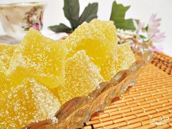 Ингредиенты: Сок — 1 Стакан Желатин — 30 Грамм Сахар — 200-300 Грамм Вода — 100 Миллилитров (для свежего сока) Как приготовить "Мармелад из сока" 1. В данном случае в простой рецепт мармелада из сока используется 2 апельсина, из которых нужно выжать сок. Немного нагреть сок и всыпать туда желатин. Оставить на 5-7 минут. 2. Сахар соединить с водой и отправить в небольшую кастрюльку. Поставить на огонь и довести до кипения. 3. Сладкий сироп нужно проварить на медленном огне, чтобы сахар полностью растворился. Затем в кипящий сироп, предварительно сняв его с огня, влить сок с желатином. Активно перемешивать, пока желатин полностью не растворится. 4. Сироп процедить через сито и разлить по небольшим формочкам. 5. Можно также использовать одну большую форму. 6. Мармелад оставить застывать. Когда он полностью затвердеет, аккуратно достать его из формы. 7. Нарезать его можно квадратиками или произвольными кусочками. 8. Также мармелад из сока в домашних условиях можно