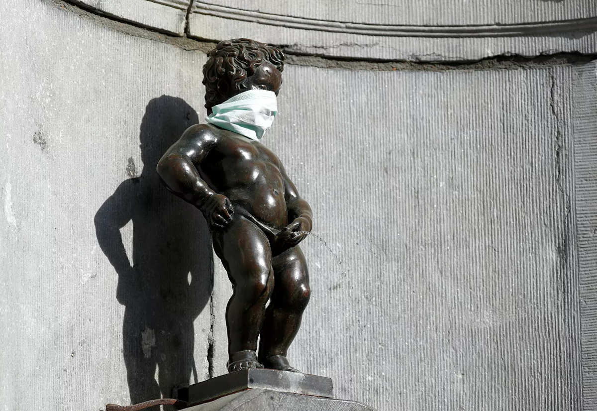 Так самый узнаваемый символ столицы Бельгии "проявляет солидарность" с бельгийцами, которые уже месяц живут в условиях жестких мер изоляции из-за коронавируса.