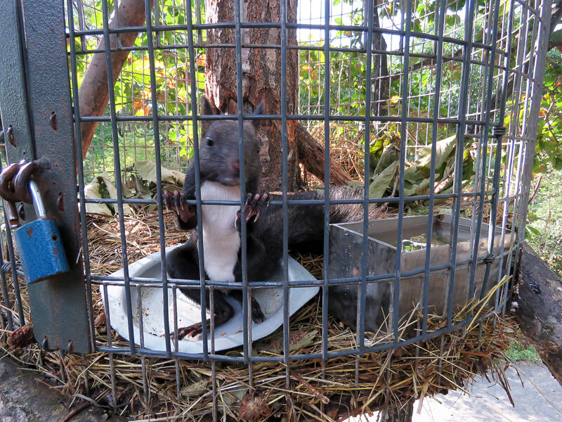 Ещё один типично приморский зверь - харза, или желтогрудая куница. Её ареал тянется отсюда на юг до Индонезии, прерываясь в Северном Китае. На севере Приморья харза конкурирует с росомахой, а на юге является безраздельным хозяином этой ниши, и основная добыча её - кабарга. Это опасное животное, к которому не стоит даже совать руки, поэтому от Парка Мелких Хищников харза изолирована особенно тщательно. Вот и у меня удачного кадра с ней не вышло: