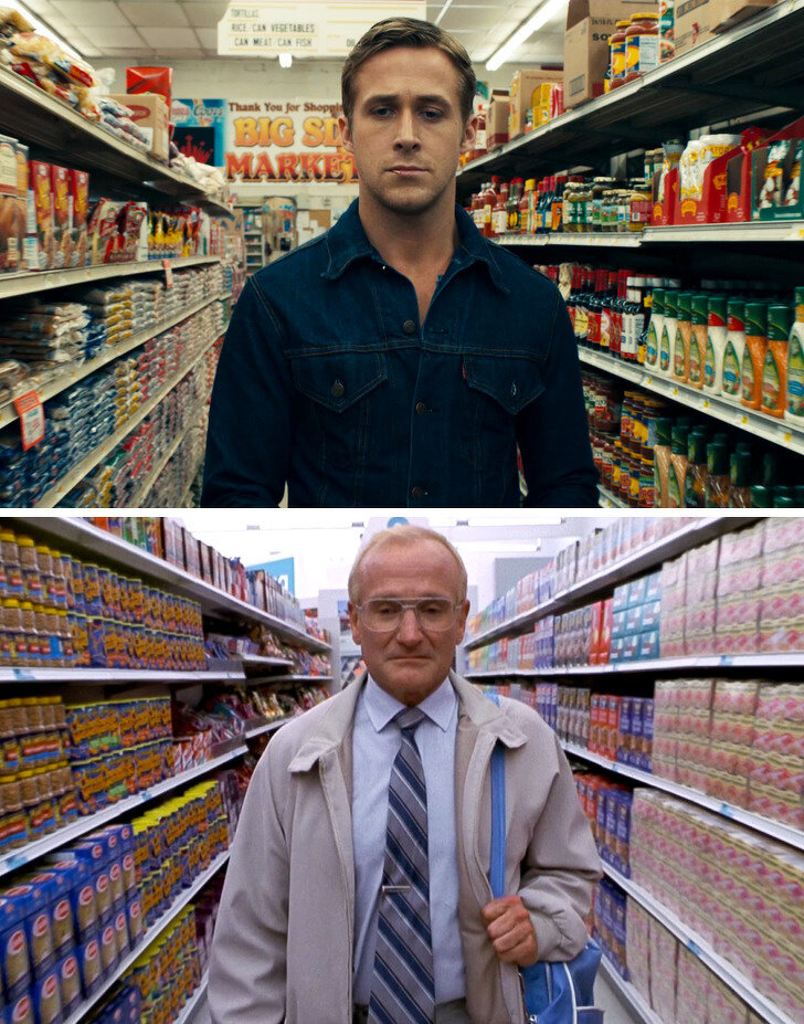Драйв (2011) — Фото за час (2002) Николас Виндинг Рефн наполнил «Драйв» разными отсылками к классическим картинам 1970–1980-х годов. Кроме того, в фильме можно увидеть кадры, в точности повторяющие те, что уже были отсняты другими режиссерами. Например, в 2002 году Марк Романек в ленте «Фото за час» снял проход главного героя в исполнении Робина Уильямса между полок с продуктами в магазине. Точно такую же сцену можно увидеть и в «Драйве». Сияние (1980) — Вoзница (1921) По воле Стэнли Кубрика Джек Торранс в «Сиянии» рубил дверь топором точно так же, как делал это герой фильма «Вoзница» Виктора Шёстрёма. Режиссер позаимствовал эту сцену даже вопреки тому, что в оригинальном произведении, которое стало основой для сюжета, Торранс махал молотком для игры в роке. Кубрику казалось, что такие изменения пойдут только на пользу. В свою очередь, Виктор Шёстрём также не был первым, кому пришла в голову такая задумка. Сам он вдохновлялся фильмом Дэвида Гриффита «Сломанные побеги» 1919 года.