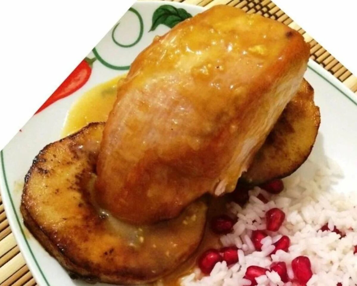 Звучит изыскано, готовится быстро, мясо индейки получается пикантным, а гарнир является прекрасным дополнением, создающим праздничную атмосферу за столом. Нескучный ужин или обед готовится очень просто. Делюсь! Ингредиенты на 2 порции: Приготовление: Стейк индейки посолить и поперчить. Обжарить на разогретой сковородке по 6 минут с каждой стороны на среднем огне. Пока жарится стейк, налить в сотейник 300 мл воды, посолить, добавить рис. Отварить на среднем огне в течение 10-15 минутминут. В готовый рис добавить сливочное масло и зерна граната. Перемешать. Яблоки очистить от кожуры, удалить сердцевину, нарезать каждое на 3 части кружками.