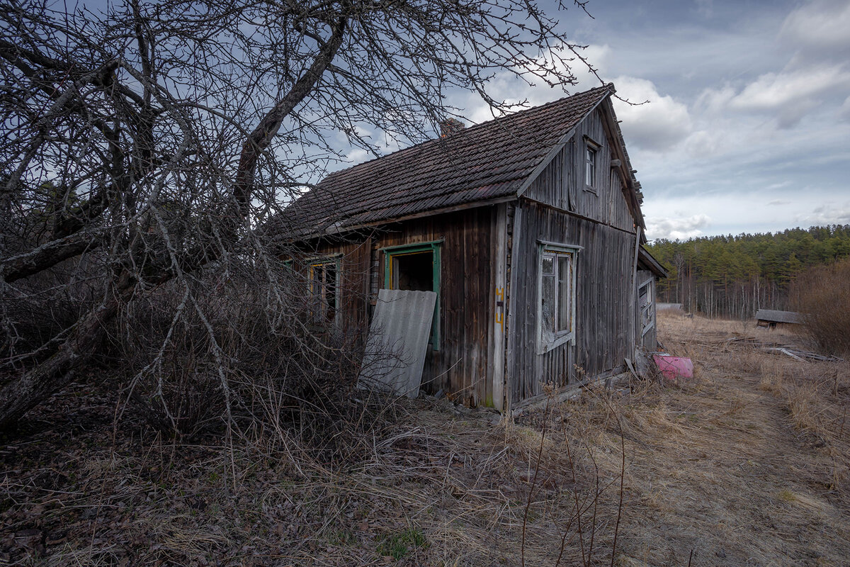 Несколько раз проезжая мимо, обращал внимание на этот небольшой карельский домик. Несмотря на выбитые окна, и явно уже несколько лет одиночества, выглядит он еще бодро, и крыша почти ровная. К тому же, кровля покрыта старой черепицей. Не часто сейчас встретишь. Через окно в сад вылетает старая бабушкина занавеска. А через распахнутую на заднем дворе дверь, комнаты заливает солнечным светом. Теплый и добрый свет какой то. Но внутри разруха. Мародеры рылись тут основательно , перевернув вверх дном все вещи. На входе нас встречает книга "Ваш Дом" А под ногами тут разбросаны отголоски чьей то жизни. Той жизни,чья эпоха прошла. Удивительно ,но даже на первый взгляд,тут валяются вполне приятные вещицы: крынки. Или вот такая досочка. Это Карелия, естественно тут можно встретить на полу сети и резиновые сапоги. А это явно был уголок хозяина Я ничего не стал брать, просто попробовал ощутить атмосферу. Ту атмосферу, когда тут топили вот эту капитальную печь ,а в крынках был