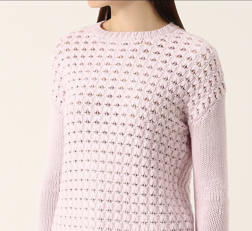 Довольно капризный узор, требовательный как к уровню навыков вязальщицы, так и к пряже Бренд на фото: Loro Piana. Артикул производителя: FAI0186. Раппорт узора 3 петли. Внимание! Узору требуется блокировка. Узор выполняется пряжей разной толщины: Пряжа А – тонкая и объемная пряжа в 2-3-4 сложения (рекомендую попробовать разные варианты); Пряжа Б – та же пряжа в 1 сложение. Для образца набрано 23 петли итальянским способом и связан один ряд резинки 1*1. 1 ряд (лиц., пряжа А): 1 изнаночная,* 1 лицевая, 2 изнаночные ; повторять от * до последних 2 петель ряда, 1 лицевая, 1 изнаночная. 2 ряд (лиц., пряжа Б): 1 изнаночная,*накид, 1 лицевая, накид, 2 изнаночные; повторять от * до последних 2 петель ряда, накид, 1 лицевая, накид, 1 изнаночная. 3 ряд (изн., пряжа А): 1 лицевая,* спустить накид, 1 лицевая, спустить накид, 2 лицевые ; повторять от * до последних 4 петель ряда (включая накиды), спустить накид, 1 лицевая, спустить накид, 1 лицевая. 4 ряд (лиц., пряжа А): все петли изнаночные 5