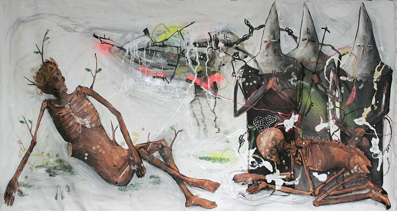 В смерти меня очень интересует один момент – разделение сознания от плоти, и дальнейшая судьба плоти. Какая реакция может быть у сознания, если оно не выключено, не исчезло, не стало пустотой после смерти, когда это сознание видит-чувствует-знает, что его бывшая любимая оболочка, которую оно стремилось накормить и всячески ублажить при жизни становится гнилым потрепанным мясом, пеплом из костей, сухожилий и прочих анатомических элементов. Что происходит с неразрывной связью между идеей и материей? – вот вопрос, который я ставлю перед собой и каждая моя картина – это попытка ответить на него.