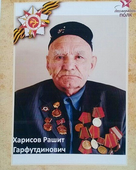 Дедушка (я называла Картатай❤️) пошёл служить в армию весной 1945 года (в 18 лет) из деревни Нигматуллино Альшеевского района Республики Башкортостан призывалось тогда трое парней: он, Гайфуллин Г, Минияров Ф., который к сожалению домой не вернулся. Вскоре пришла весть о победе фашисткой Германией. И новобранцев повезли уже не на запад, а в противоположном направлении - на Дальний Восток. Там тщательно готовилась операция по ликвидации военного очага и освобождению китайского, корейского и других народов из под власти японцев. Солдаты участвовали в военных учениях, готовились к боевым действиям. 9 августа был получен приказ перейти китайскую границу. Бойцы I Дальневосточного фронта, среди которых был рядовой Харисов Р.Г. Вошли в приграничный город Дуннин. Далее, как р