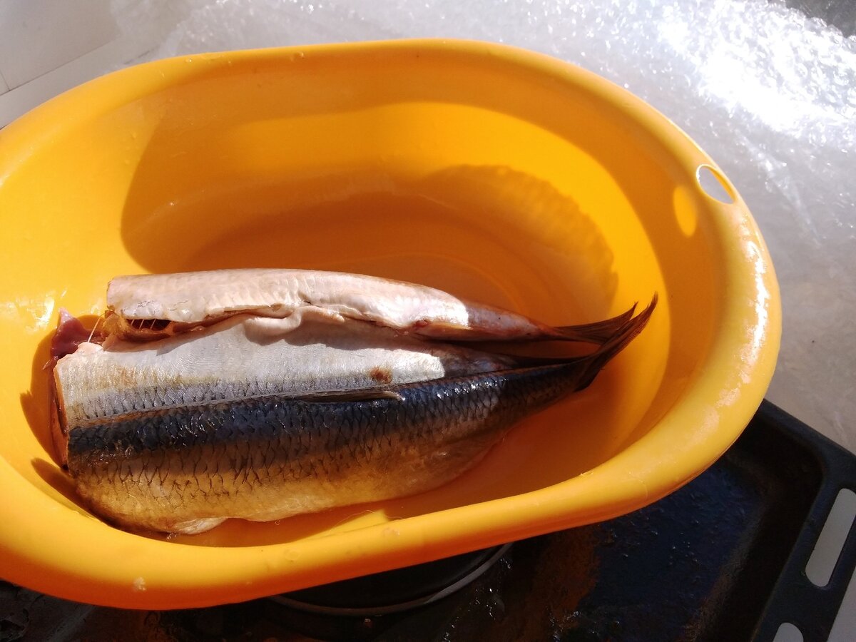 Ингредиенты для приготовления селедки под "шубкой": Селедка-3 шт.; Морковь-1 шт.; Лук-1 шт.; Приправа для рыбы-по вкусу; Соль-по вкусу; Перец-по вкусу; Хрен-2 ч.л. (по желанию); Аджика-1 ч.л. (по желанию); Соевый соус-2 ст.л.; Уксус-0,5 ч.л.; Майонез-1 ст.л.; Разделываем селедку. Отрезаем голову и, по желанию, плавники и хвост, удаляем внутренности, промываем. На противень налить немного масла, застелить фольгой, выложить селёдку. Добавляем соевый соус, приправы, соль, перец, хрен, хорошо натираем селедку, не забываем натереть ее изнутри. Оставляем мариноваться примерно на 20 минут. Тем временем натираем на крупной терке морковь, лук режем полукольцами, добавляем майонез, уксус, солим, перчим и перемешиваем. Выкладываем лук с морковью поверх селедки, наливаем немного воды и накрываем фольгой. Ставим в разогретую до 180° духовку примерно на 40 минут. За 7-10 минут до окончания времени фольгу можно снять, чтобы морковь с луком поджарились. Подавайте с любимым гарниром или овощным с