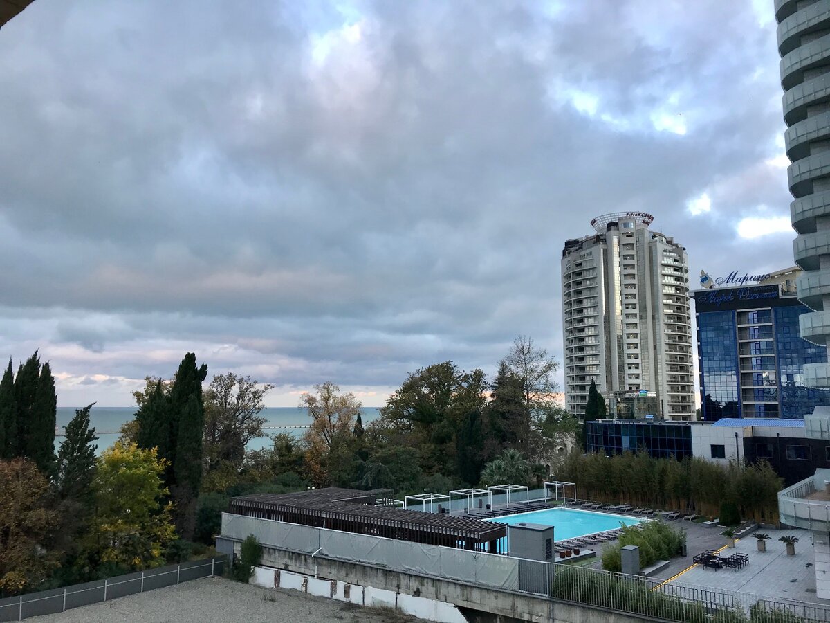 Я легко проснулся в 6 утра, как обычно, чтобы помедитировать и сделать зарядку. Сходил в душ и вроде всё хорошо, скоро и завтрак. Вообще я вчера вечером ходил искал «вход с обратной стороны» - там написано «здесь входа нет, вход со стороны ул. Орджоникидзе». Уточнил у охраны - да, это именно он 😂. Проходишь мимо старого неремонтированного фасада, который при свете утра кажется ещё более обветшавшим. И вроде даже входную группу перевели на пластик, но деньги видимо на этом и закончились. Унылое оставляет впечатление, как и все памятники советской эпохи, на которые нынче попросту забили. Неподалёку от кухни на корточках сидят два поварёнка, курят и обсуждают то ли вчерашнюю пьянку, то ли планы на сегодняшний день. Ну же, Сочи, соберись! Вход в «ресторан Приморский» оказался там, где надо, со своим пунктом охраны и рамкой металлоискателя (работающей, в отличие от основной на входе в гостиницу 😂). Поднимаешься на второй этаж и попадаешь... в «Кавказскую пленницу», ну или в какое дру