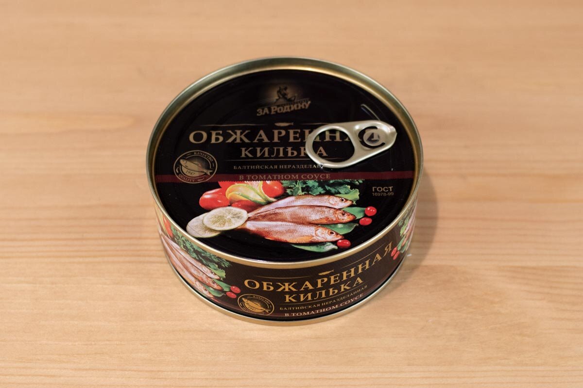 В магазине бросилась в глаза пафосно оформленная консервная банка с килькой. Современный модный дизайн для кильки в томате, это как-то вычурно, но обратил внимание и решил купить, значит, самореклама продукта сработала! Оформлена банка в черном стиле с золотыми подписями и картинкой, на которой изображена рыбка с овощами и зеленью. Всё равно не укладывается в голове — зачем кильке такой дизайн? Читаю состав: Килька балтийская, масло растительное, паста томатная, сахар, мука пшеничная, пряности, лук, регулятор кислотности — уксусная кислота, соль. Исходя из состава смею предположить, что кильку обваляли в муке, пожарили на масле, уложили в консервную банку и залили томатной пастой, уксусную кислоту добавили в качестве стабилизатора для консервации. В принципе, состав не плох. А что внутри? Заявленный вес: 240 гр.