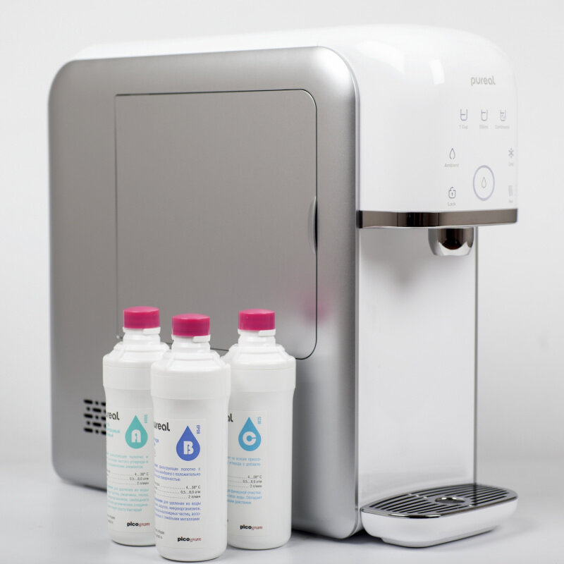 Настольная система очистки воды премиум класса на основе технологии дзета-потенциала (мембрана с положительным электрическим зарядом). Прекрасно вписывается в кухонный интерьер. Фильтр состоит из трех картриджей и 6 ступеней очистки воды. Удаляет бактерий, вирусы и тяжелые металлы. Фильтр имеет встроенный магнитный клапан, перекрывающий подачу воды при открытии крышки. Регулятор давления защищает от скачков давления в линии холодного водоснабжения. Включает в себя годовой комплект картриджей, а также все необходимое, для подключения: кран-врезку в линию холодного водоснабжения, трубку. РРА -2110 Nano с охлаждением + нагрев Проточные фильтры Pureal от Picogram (Корея) – отличное решение для тех, кто ищет качество, компактность и инновации. Основой проточных фильтров для воды от Pureal является 6 ступенчатая система, состоящая из 3 картриджей. Фильтрация воды на основе технологии Zeta potential (Дзета-потенциал). Данная технология позволяет эффективно удалять различные бактерии, микроорг