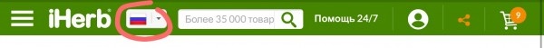 ”Сайт iHerb.com”, и он сразу откроется на русском языке. Если этого не произошло, то в верхнем левом углу главной страницы вы можете вручную изменить страну и выбрать любой язык и валюту.