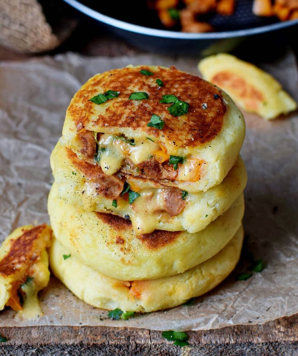 4️⃣ Налейте 2 ст. л. растительного масла в сковороду и обжарьте картофельные пирожки с обеих сторон на среднем огне до золотистого цвета.