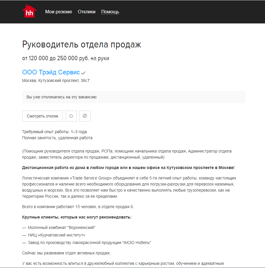 Всем привет, недавно я столкнулся с неприятной ситуацией по поиску работы. На сегодняшний день Очень много работодателей размещают свои вакансии на таких сайтах как: worki.ru, hh.ru, и прочие. Мне "посчастливилось" наткнутся на одно очень заманчивое объявление: