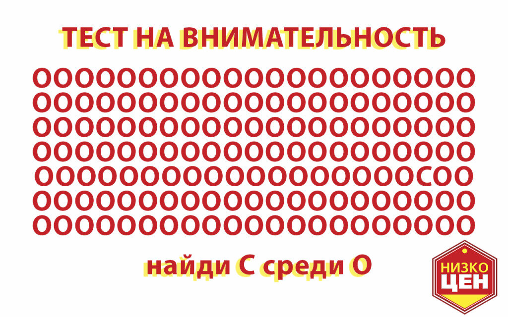 Всем привет дорогие друзья! Сегодня я подготовил для вас тест на внимательность! Тест будет разных сложностей. Будет много разных тестов где вы должны будете найти какую ту конкретную цифру или букву среди других букв или цифр. Вы готовы? Тогда поехали! Удачи!!! 1. Найди "С "среди "О" Вам даётся неограниченное время для того чтобы найти букву С среди букв О. Это типичный тест на внимательность. Скорее всего самый лёгкий из всех сегодняшних тестов. С ним сможет справиться 99% зрителей за 3 секунды. Поехали! 2. Найди 1/2 среди 1/4 Все тесты вы можете выполнять неограниченное количество времени! Этот тест чуть чуть посложнее предыдущего теста. Но с ним я думаю справится каждый! 3. Найди " N" среди "M" Этот тест уже посложнее. Тут есть подвох!Ну я всё таки думаю вы с ним с лёгкостью справитесь! Так что поехали! 4. Ну этот тест уже посерьёзней! Что нужно сделать написано на картинке! Этот тест последний на сегодня и самый сложный из сегодняшнего выпуска! Но немножко нужно посмотреть