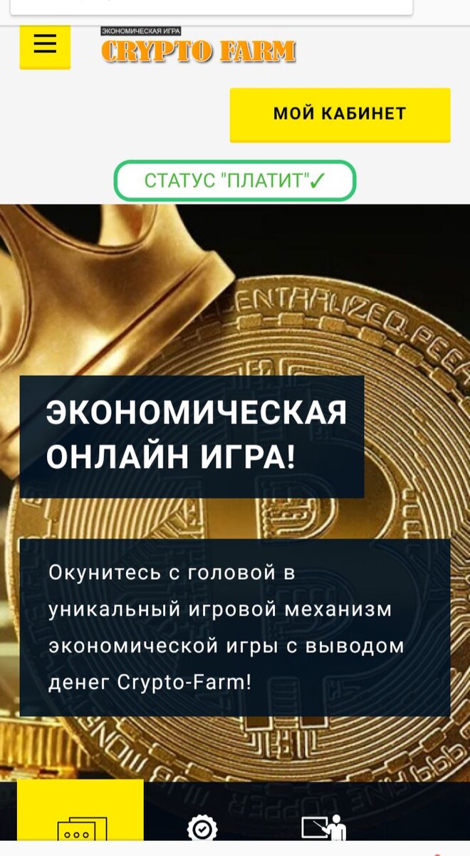 Игра с выводом денег Статус ПЛАТИТ Регистрация бесплатная Майнер 1 уровня в подарок Нет заглушки на вывод Вывод денег от 1 рубля до 15000 рублей за одну транзакцию без вложений Реферальная программа 8%2%1%0.5 ДОХОД ОТ 25% ДО 35% В МЕСЯЦ