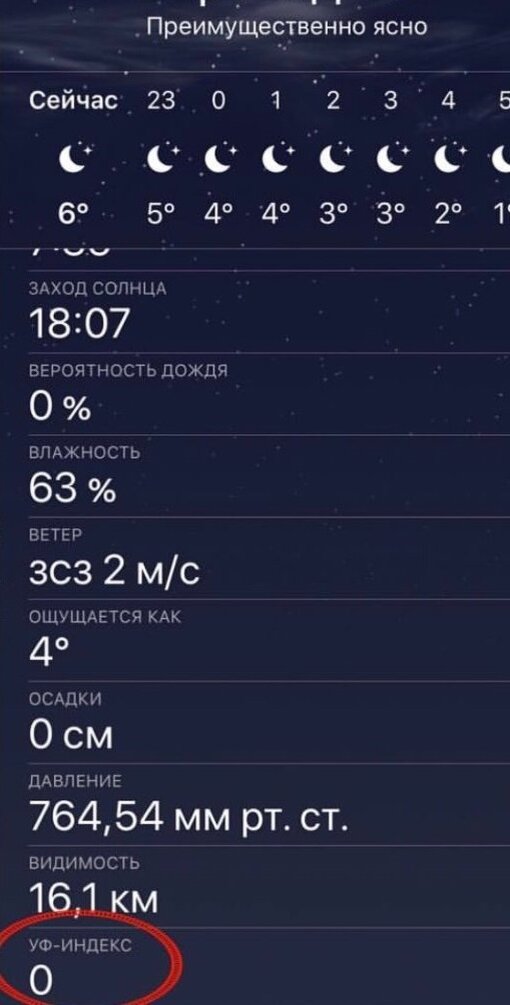 Вы только не пугайтесь, но ультрафиолет — страшнейший враг кожи. Морщины, пигментация, сухость — все это следствие чрезмерной любви к загару без прикрытия крема с SPF. Тут, конечно, найдутся любители возразить: вот я прошлым летом лежала на пляже с утра до вечера, но кожа в порядке. Нет, не в порядке. УФ-лучи имеют неприятную особенность причинять вред, который будет заметен не сразу. И те же пигментные пятна точно появятся — но через пару лет (хорошо, если только они, а не что-то похуже). В городе мы меньше времени проводим на солнце, но даже 20 минут (от дома или офиса до метро) в день достаточно для появления неприятных последствий от УФ-излучения: на коже могут возникнуть пигментные пятна, сухость или покраснения. В перспективе это выльется в разрушение соединительной ткани клеток и коллагена и фотостарение. Если по каким-то причинам вам не хочется использовать солнцезащитный крем ежедневно, то за индексом ультрафиолета (UV Index) можно следить в приложении «Погода» на смартфоне ил