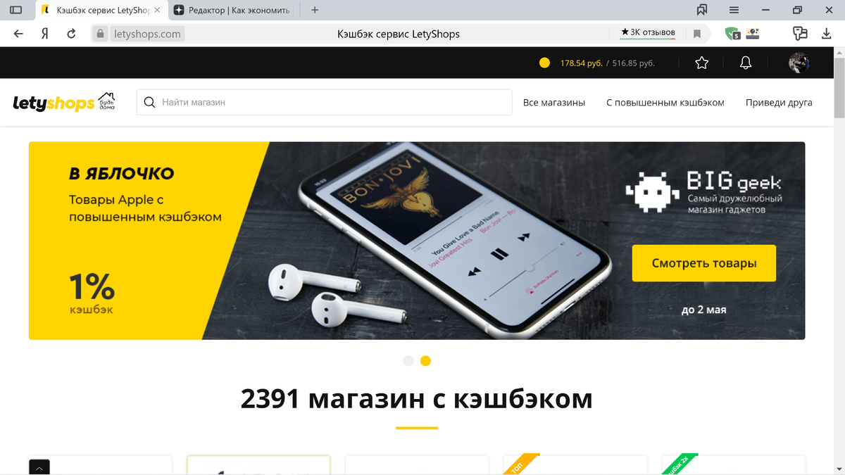 Мой любимый кешбек сервис! Большинство интернет-магазинов, в которых я делаю покупки являются партнерами кэшбэк сервиса Letyshops. На время написания этой статьи более 2000 магазинов сотрудничают с данным сервисом. Одни из самых популярных: Юлмарт, Aliexspress, Wildberries, Lamoda, М.видео, Техносила, La Redoute, Акушерство, Quelle, Media Markt, Delivery Club, Groupon RU, eBay, O'STIN, Лабиринт, PUDRA, Asos, Sapato, Связной и многие другие. Практически с каждой своей покупки я получаю небольшой возврат денег (кэшбэк). При покупках в интернет-магазинах кэшбэк мне начисляется через сайт Letyshops. На все покупки в обычных магазинах кэшбэк я получаю через банк Тинькофф А теперь я расскажу как же пользоваться данный сервисом. · Вы регистрируетесь на сайте Letyshops · Затем выбираете в списке магазинов-партнеров тот, в котором собираетесь сделать покупку. · Переходите по ссылке в интернет-магазин. · Делаете покупку, как обычно (товар в корзину лучше добавлять после перехода с Lety