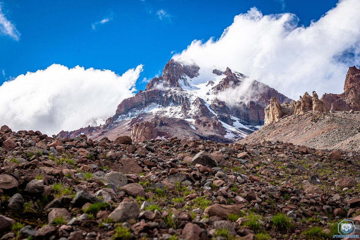 Сразу после Эльбруса, я еду на машине в Грузию к вершине Казбека. На границе меня ждала многочасовая очередь. Агрессивные и злые люди, готовы накинуться на любого, кто проедет вперед. Не пускают ни детей, ни стариков. Со слов друзей, ежегодно в этой очереди кто-нибудь умирает не дождавшись помощи или наоборот рожает раньше срока. При чем на грузинской стороне такого нет, заторы только на российском посту. Со второй попытки днём следующего дня, после 6 часов в очереди наконец прошли границу. Через 50 км поселок Степанцмида, он же бывший Казбеги. Здесь начинаются все восхождения на Казбек. Много писать про место не буду, скоро выйдет видео и сами все увидите.