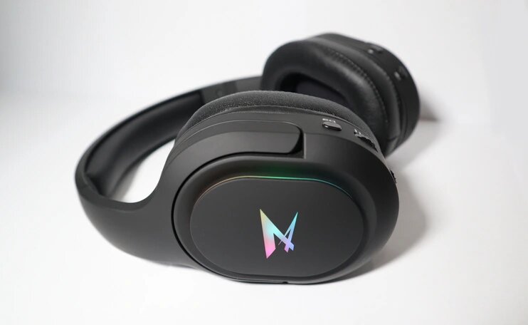 Начнем с коробки и комплекта. Вот сами наушники: В комплекте идет съемный микрофон на гибкой ножке, кабель для подключения гарнитуры к компьютеру, ноутбуку, или смартфону, кабель USB для подзарядки наушников, и радио передатчик. В общем комплектация достойная. Разъемы кабелей позолочены, выглядят надежно, и единственное что можно было сделать получше - это передатчик. Такое ощущение что свисток радиопередатчика положили как бы на сдачу, хотя это один из важных элементов для игровой гарнитуры. Теперь о наушниках. Традиционно все элементы управления расположены на левой стороне: разъем для подключения микрофона, миниджек для проводного подключения, рядом индикатор состояния, затем выключатель питания, колесо громкости, и кнопка эквалайзера, она же кнопка сопряжения. На правой стороне разъем для подзарядки microusb, индикатор зарядки, кнопка отключения микрофона, и кнопка регулировки подсветкой. К самим наушникам претензий нет. Хороший дизайн, приятные материалы, крышки чашек из матового