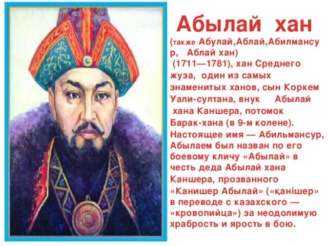«От Средней Орды, которая кочует к сибирской стороне, яко то: Барака, Ерали и Аблая – салтанов и от самого Абулмамат-хана, також и от Жанбек-тархана и их подчиненных – никаких предерзостей не бывало и нет» - Казахско-русские отношения в XVI – XVIII веках: Сб. документов и материалов / Под ред. М.О. Джангалина, Ф.Н. Киреева, В.Ф. Шахматова. – Алма-Ата: Изд-во АН Каз. ССР, 1961. – с.344