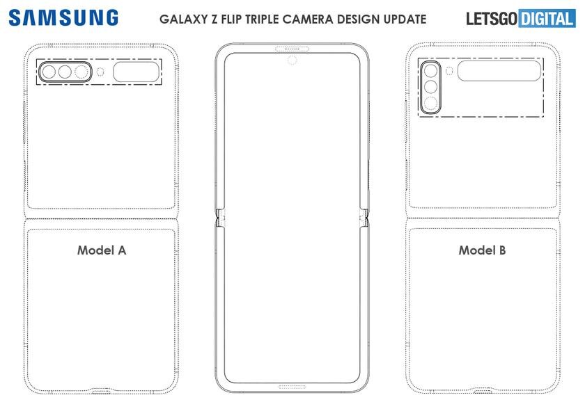В феврале компания Samsung представила новый складной смартфон Galaxy Z Flip. А теперь компания работает над его преемником. Чего ждать Патентную документацию на новую модель нашли на сайте Всемирной организации интеллектуальной собственности (World Intellectual Property Organization, WIPO). И в ней есть изображения нового Galaxy Z Flip. Судя по ним, смартфон получит такую же конструкцию «раскладушки», как и нынешняя модель. В плане дизайна изменения небольшие. Samsung рассматривает два варианта устройства, которые отличаются расположением модулей основной камеры и размером дополнительного экрана. В первом случае. В первом случае камера тройная и, как у оригинального Galaxy Z Flip, расположена горизонтально. Дополнительный дисплей при этом находится рядом и имеет небольшой размер. Во втором случае тройная камера расположена вертикально, а дополнительный экран — рядом с ней. В результате он большего размера и отображает больше информации. Для фронтальной камеры предусмотрен круглый